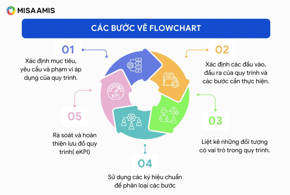 - Gắn ký hiệu phù hợp với chức năng của mỗi bước để đảm bảo sự rõ ràng.