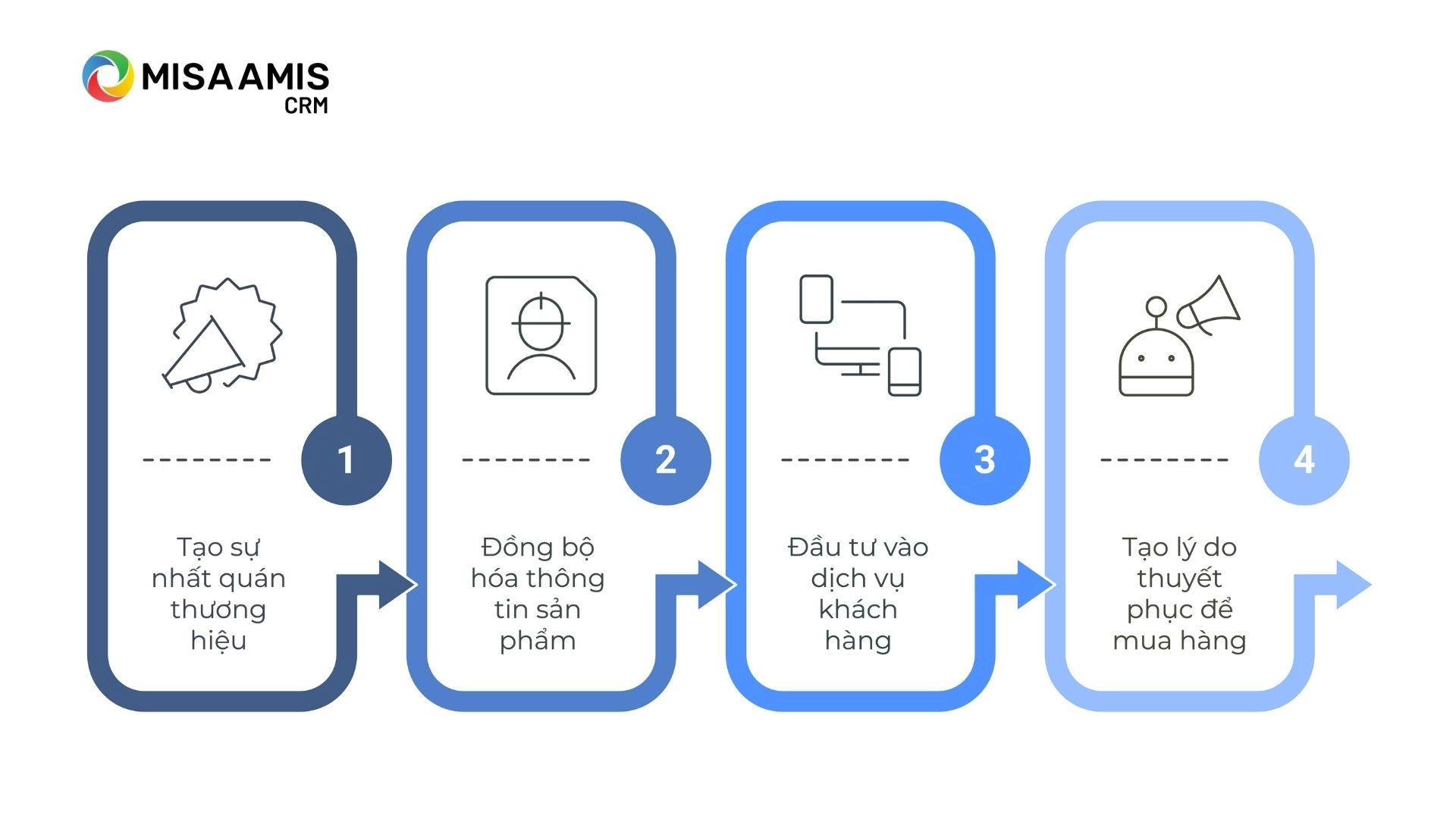 | Thời gian thực hiện chiến lược | Đòi hỏi doanh nghiệp phải dành ra nhiều thời gian và chi phí để vận hành các kênh bán hàng một cách trơn tru và liền mạch | Giải pháp này sẽ lấy khách hàng làm trọng tâm, kết nối tất cả các kênh bán hàng thành một chuỗi khép kín. Tất cả chương trình khuyến mãi, chính sách khách hàng sẽ được áp dụng tại tất cả các kênh. |