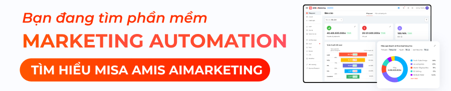 Chưa có công cụ Marketing automation hiệu quả, doanh nghiệp có thể trải nghiệm thử MISA AMIS aiMarketing. Phần mềm đầy đủ công cụ từ thu nạp, nuôi dưỡng, chuyển đổi, chăm sóc khách hàng, tích hợp hệ sinh thái phần mềm mạnh mẽ từ MISA. Click vào banner để tìm hiểu phần mềm: