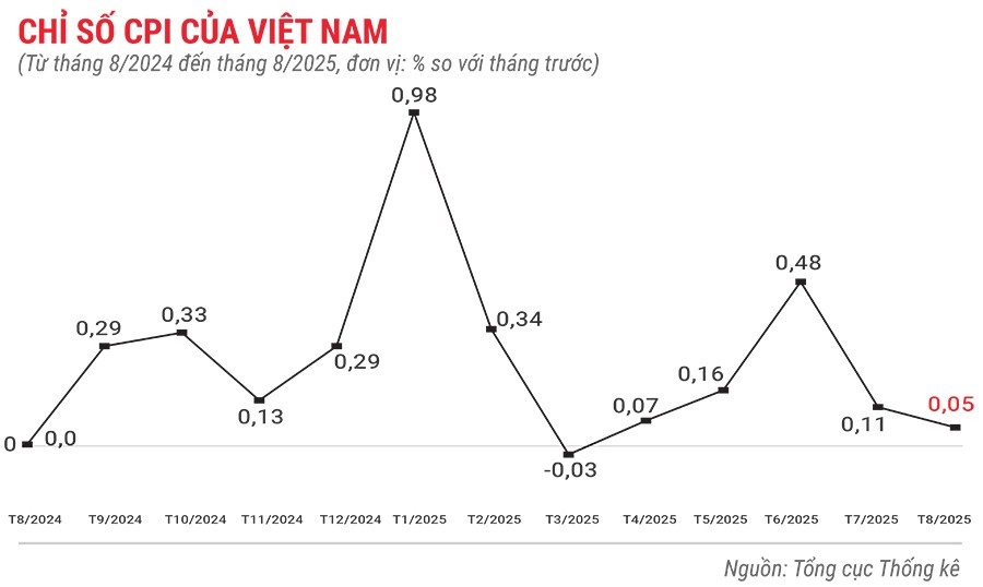 Chỉ số CPI của Việt Nam tính đến tháng 8/2025- Nguồn: Tổng cục Thống kê – Ảnh: Internet