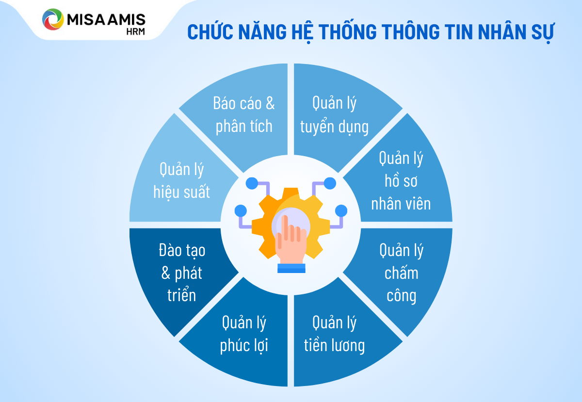 HRIS kết hợp giữa công nghệ thông tin và các hoạt động nhân sự, giúp tự động hóa các quy trình như: tuyển dụng, chấm công – tính lương, đào tạo, đánh giá hiệu suất, quản lý hợp đồng, quản lý hồ sơ nhân sự,…