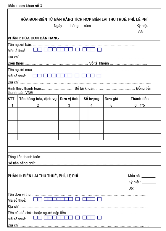 Mẫu hóa đơn điện tử bán hàng tích hợp biên lai thu thuế, phí, lệ phí