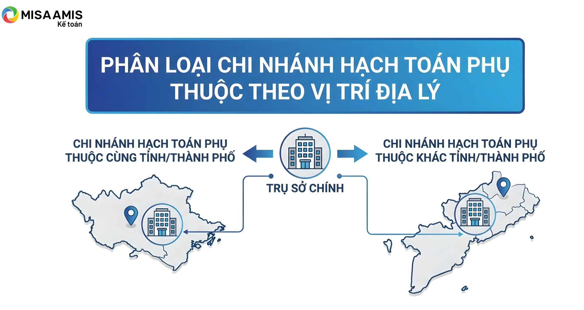 Căn cứ vào vị trí địa lý mà chi nhánh đăng ký, có thể phân loại chi nhánh hạch toán phụ thuộc thành hai hình thức: