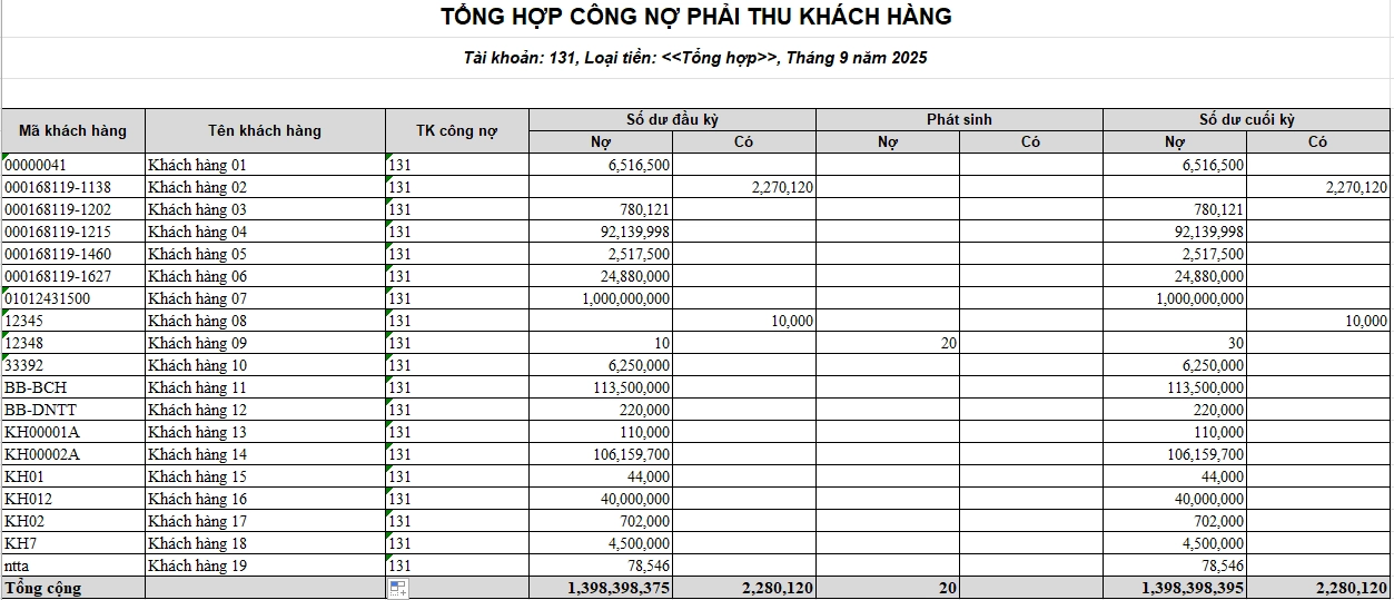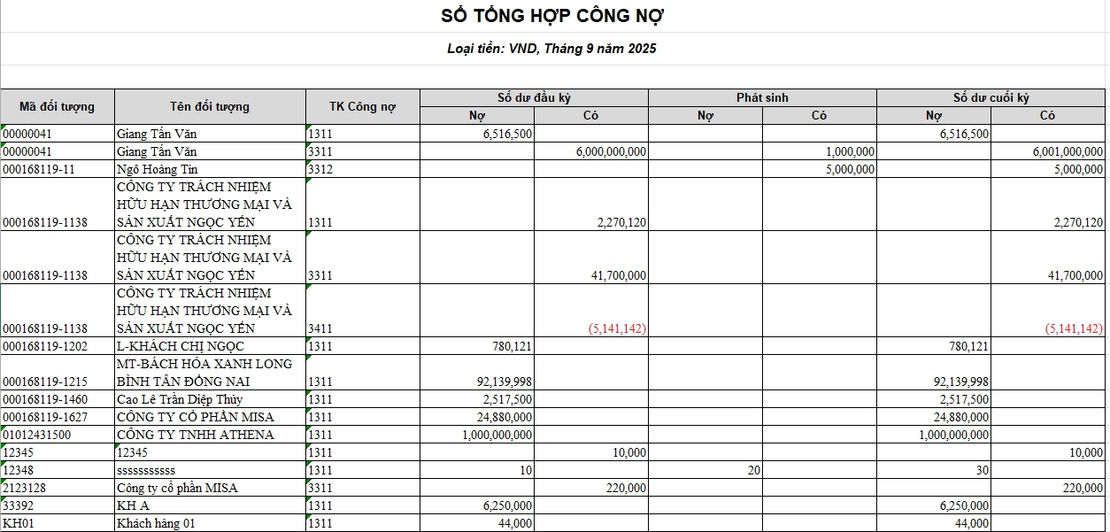 Bảng công nợ tổng hợp
