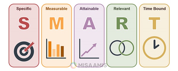 Để lựa chọn và xây dựng chỉ số hiệu suất quan trọng (KPI) phù hợp cho từng doanh nghiệp, việc xác định mục tiêu kinh doanh là cần thiết. Phương pháp SMART – một phương pháp phổ biến trong quản lý hiệu suất và đánh giá kết quả, được sử dụng để thiết lập KPI trong các tổ chức và doanh nghiệp. Có năm tiêu chí SMART cần tuân thủ khi xây dựng KPI: