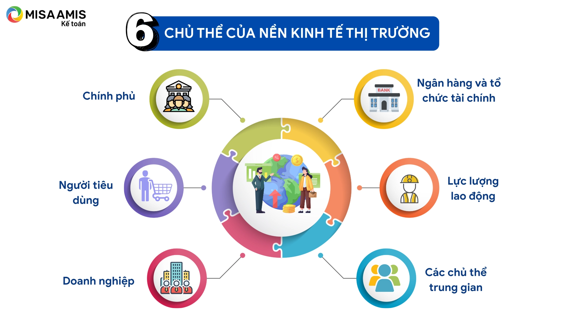 Trong kinh tế thị trường, có sáu chủ thể cơ bản giữ vai trò then chốt trong vận hành và phát triển nền kinh tế:
