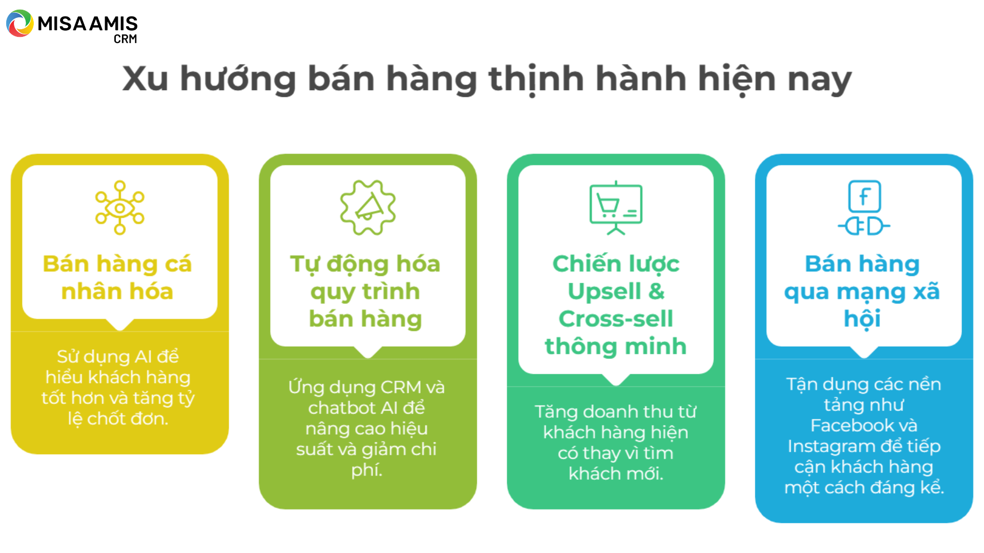 - Ứng dụng công nghệ trong bán hàng (CRM, AI, Automation) giúp tối ưu quy trình, nâng cao hiệu suất.