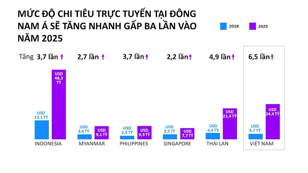 Theo Facebook và Công ty tư vấn quản lý Bain & Company, Mua sắm trực tuyến của Việt Nam được dự báo có mức độ tăng trưởng nhanh nhất và đứng thứ 2 về giá trị, với mức tăng trưởng 6,5 lần lên tới 24,4 tỉ USD. Điều này cho thấy tiềm năng khổng lồ của việc kinh doanh trực tuyến.