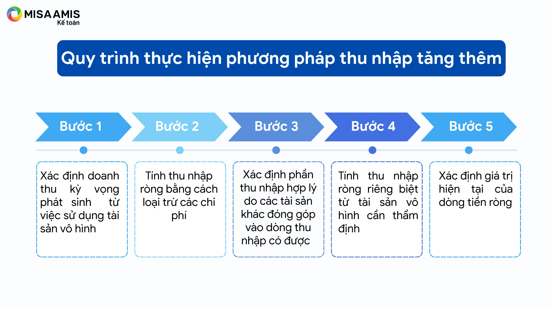 Phương pháp thu nhập tăng thêm xác định giá trị tài sản vô hình thông qua giá trị hiện tại của dòng tiền phát sinh từ chính tài sản vô hình, sau khi đã loại trừ phần đóng góp của các tài sản khác vào tổng dòng tiền.