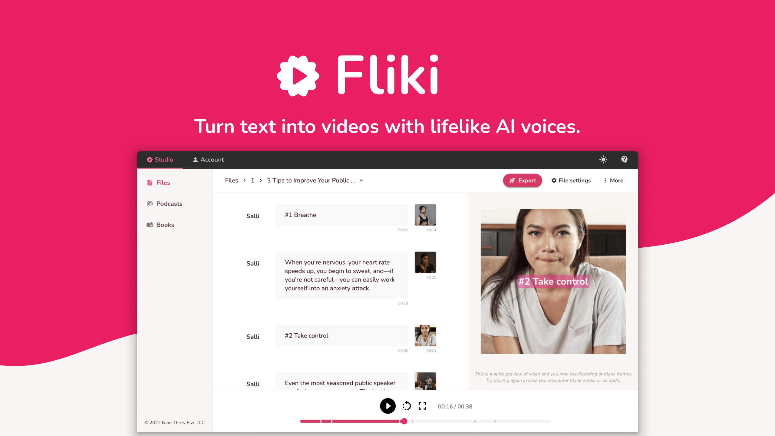 • Biến văn bản (bài blog, tweet) thành video với giọng đọc và media phù hợp.