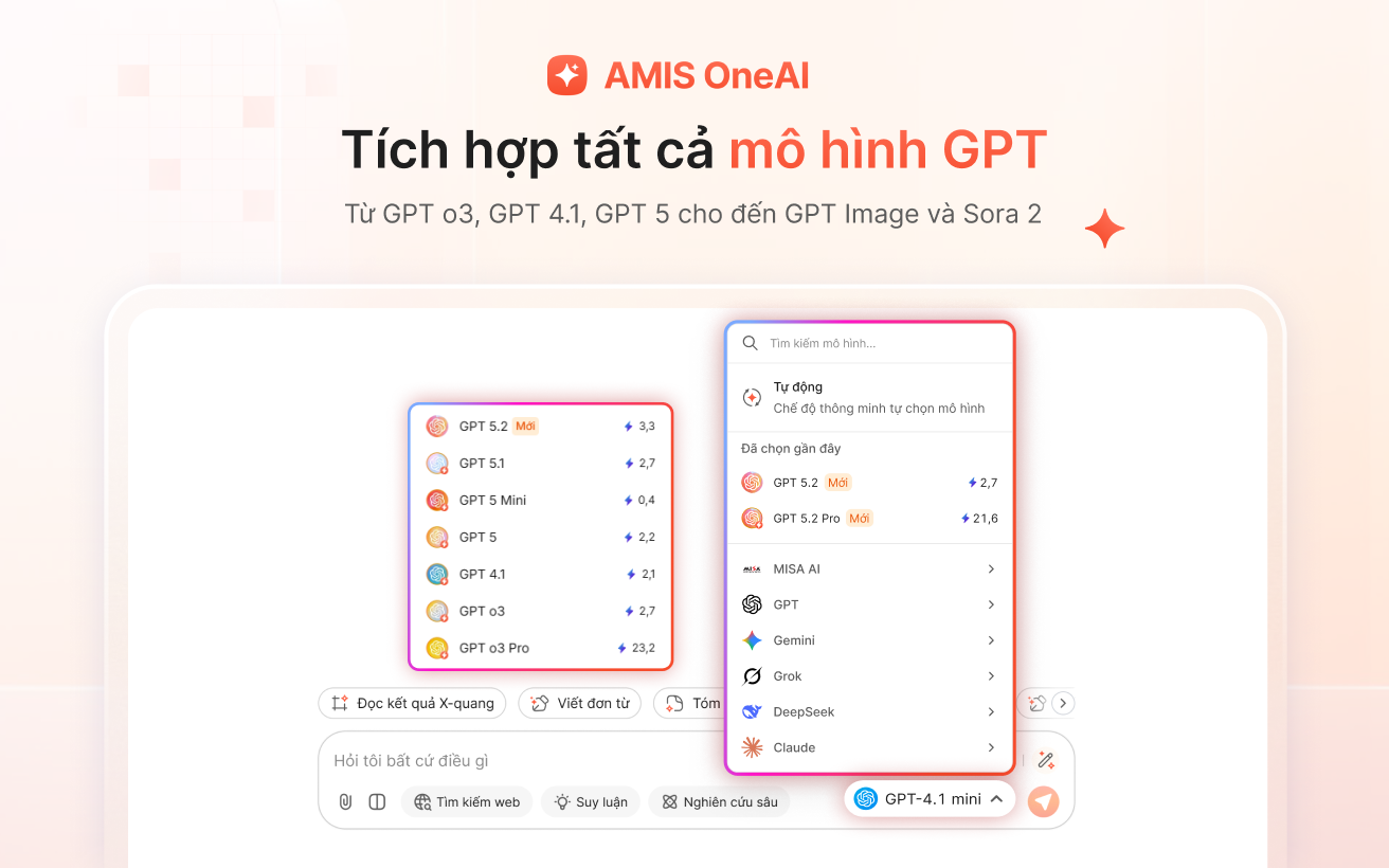 Các phiên bản nổi bật của GPT đều có mặt trên MISA AMIS OneAI.