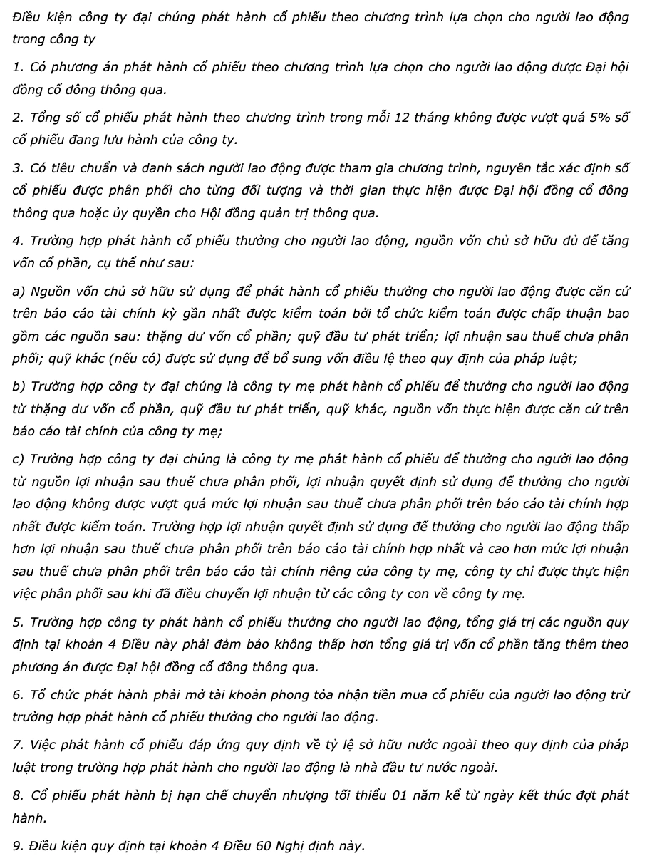 Chi tiết về điều kiện phát hành ESOP xem tại ảnh sau đây: