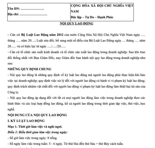 Tuy nhiên, mỗi doanh nghiệp sẽ có đặc thù vận hành khác nhau, nên cần linh hoạt điều chỉnh điều khoản sao cho phù hợp. Doanh nghiệp có thể tải xuống miễn phí và sử dụng như một nền tảng để xây dựng nội quy riêng cho mình.