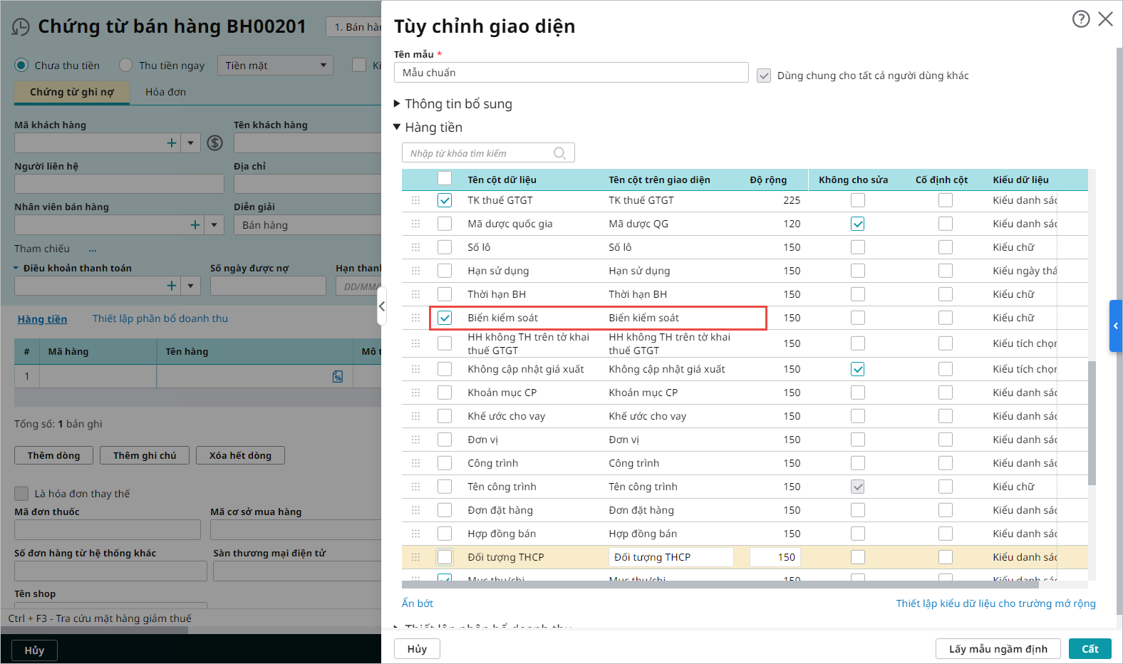 - Khi lập hóa đơn chứng từ: Người dùng cần thực hiện tùy chỉnh giao diện để hiển thị thêm thông tin Biển kiểm soát: