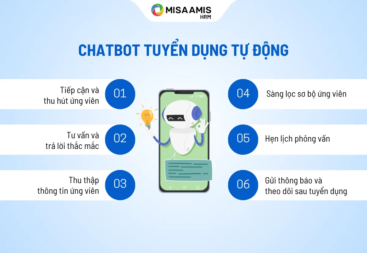 Một số hệ thống nâng cao còn có khả năng học hỏi từ dữ liệu để đưa ra câu trả lời chính xác hơn theo thời gian. Nhờ hoạt động liên tục 24/7, chatbot giúp doanh nghiệp không bỏ lỡ những tương tác quan trọng với ứng viên, đặc biệt trong giai đoạn sàng lọc đầu vào.