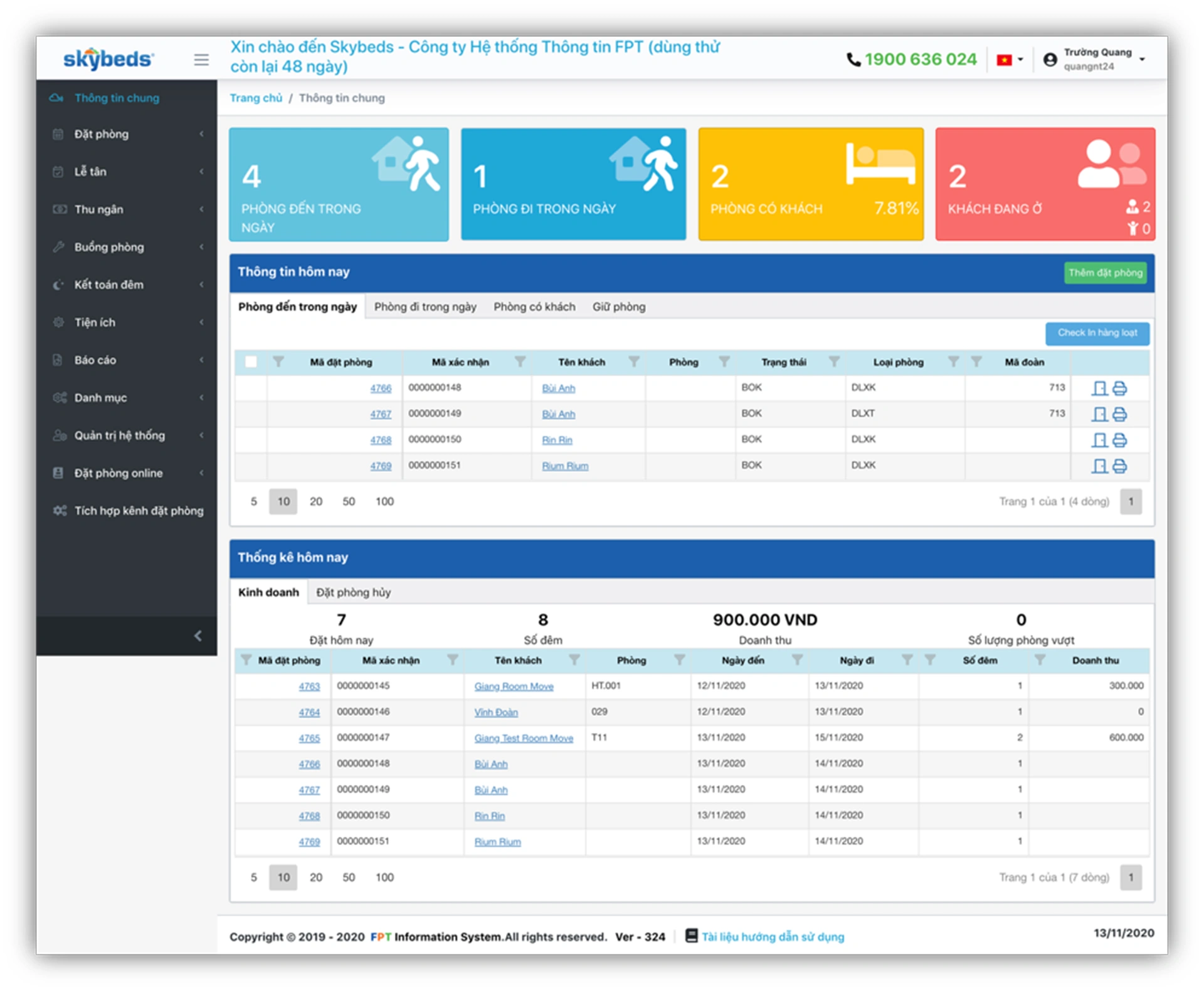 3.2. FPT.Skybeds – Phần mềm quản lý khách sạn cho mô hình nhỏ và linh hoạt