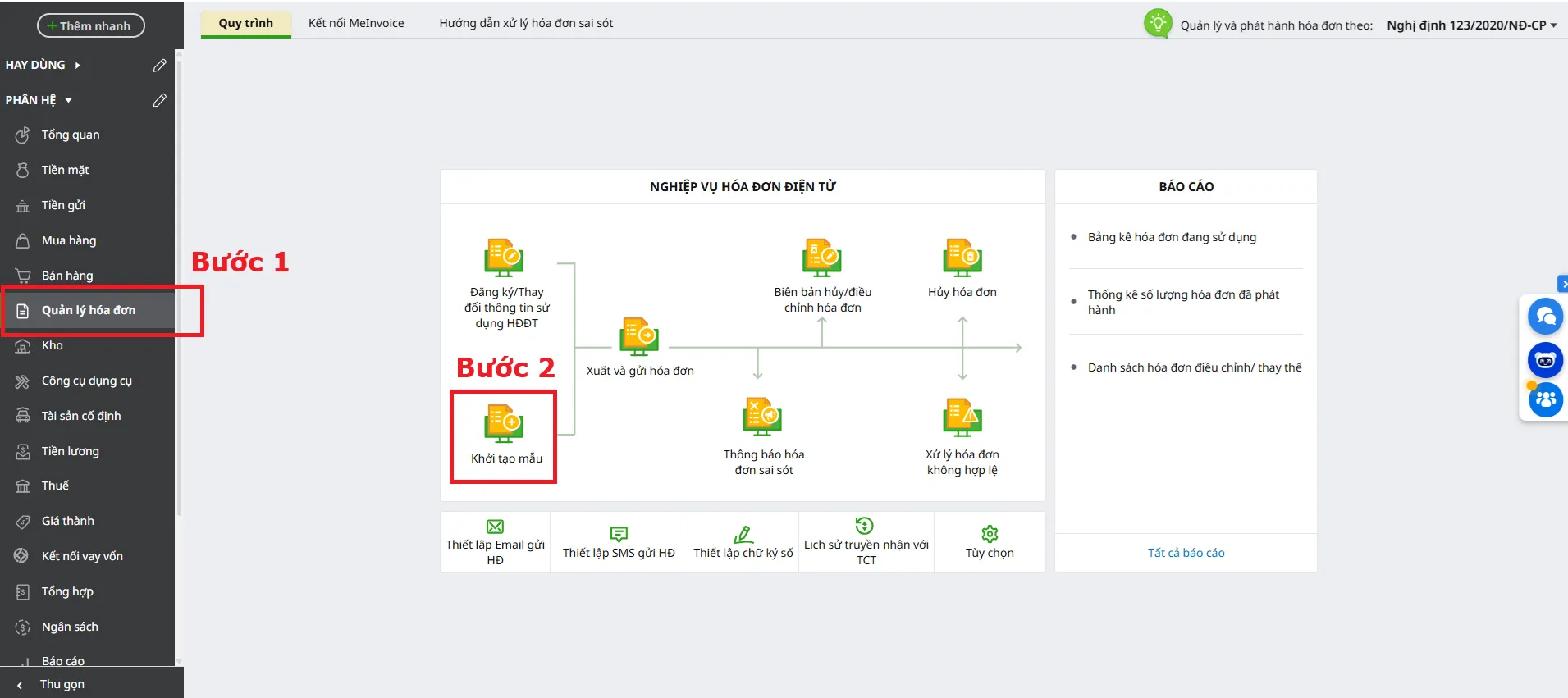 Bước 1: Truy cập phân hệ “Quản lý hóa đơn”