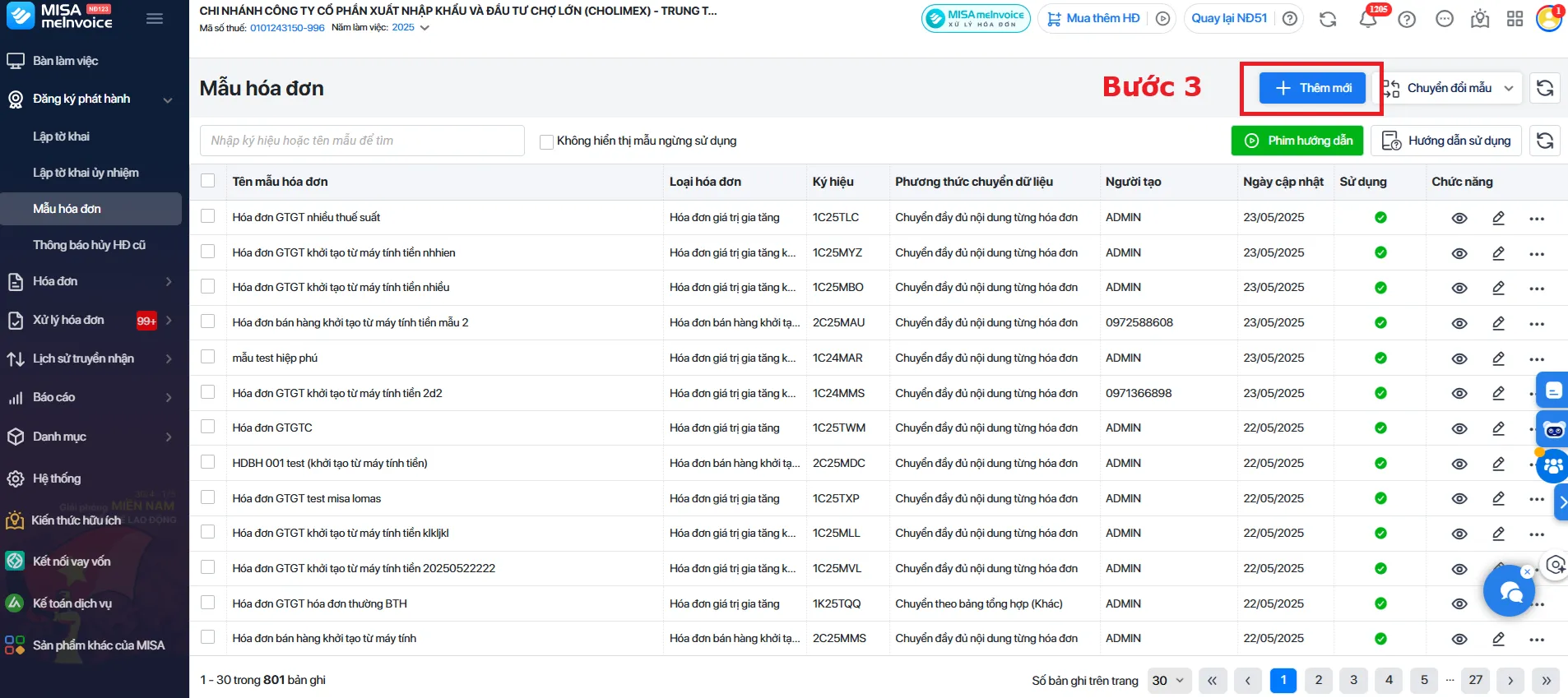 Tiếp tục chọn “Thêm mới” để tạo một mẫu hóa đơn mới hoàn toàn từ đầu.