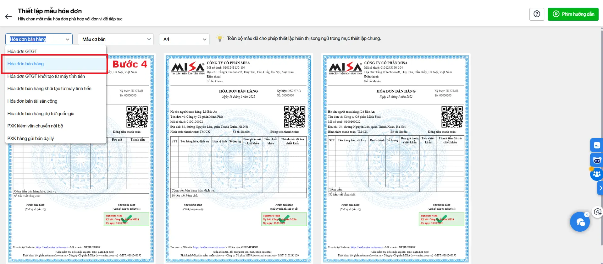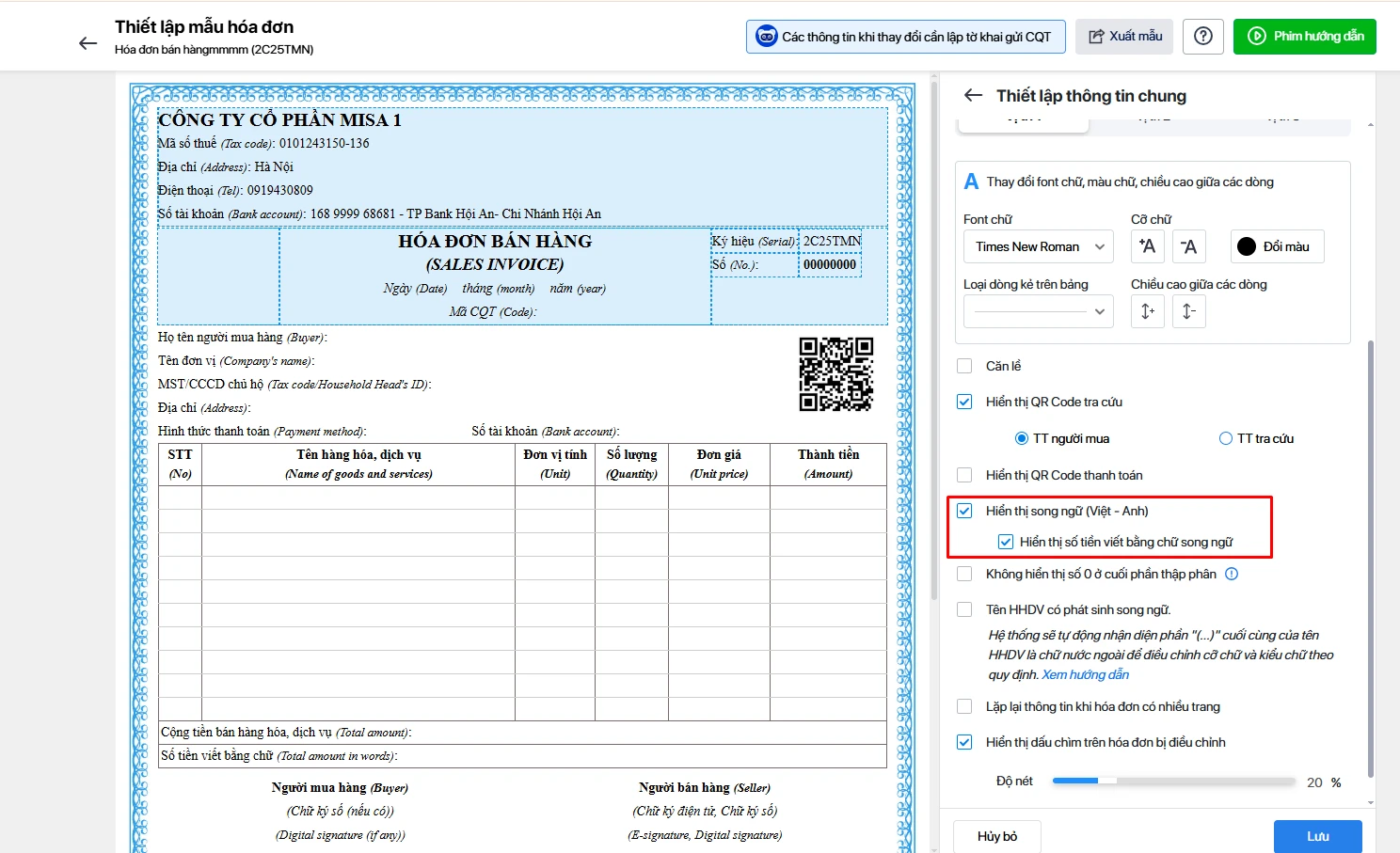 Bước 5: Kích hoạt chế độ hóa đơn song ngữ