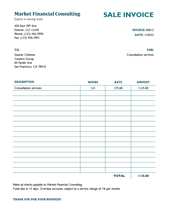 2. Mẫu hóa đơn bán hàng tiếng Anh thông dụng