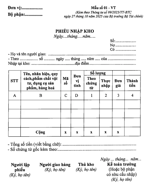 Chứng từ nhập kho: