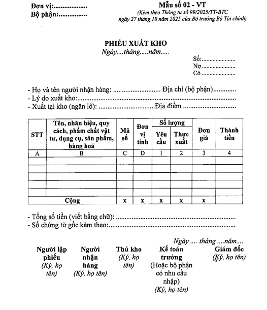 Chứng từ xuất kho: