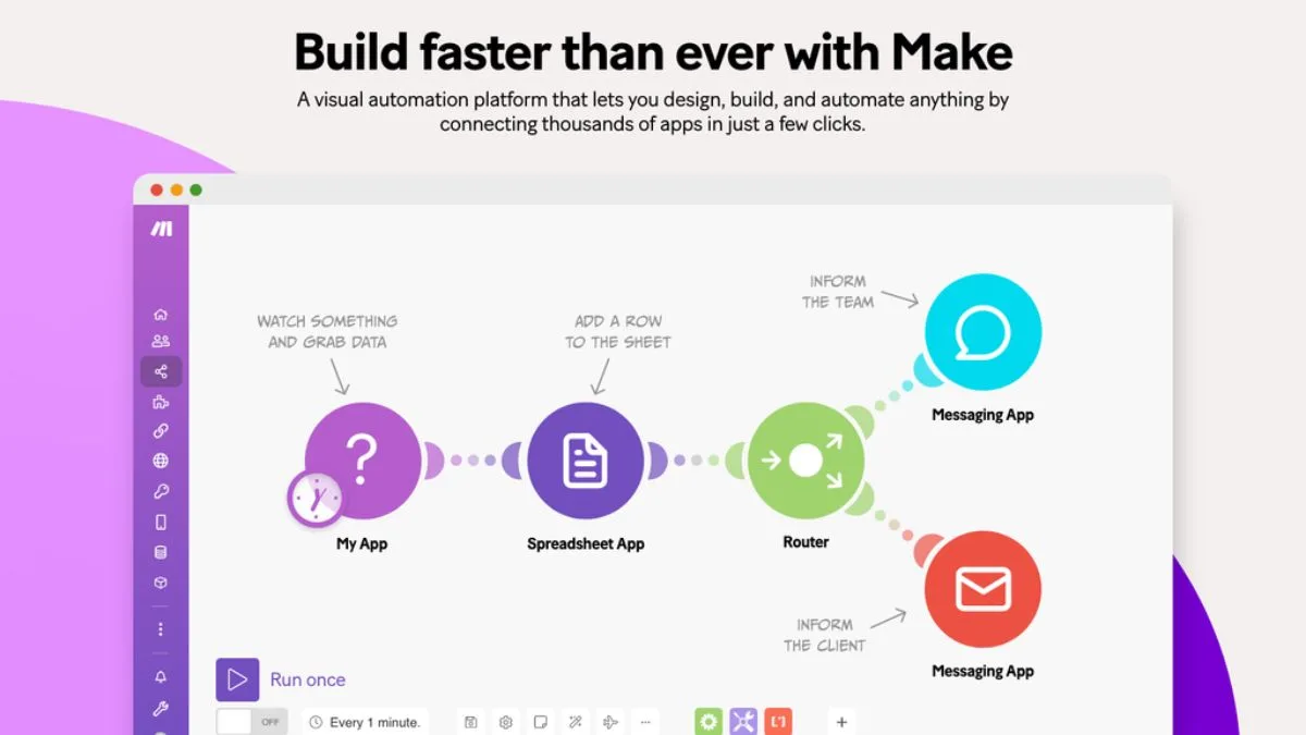 Hoàn toàn không khó! Giao diện kéo-thả của Make được thiết kế cho tất cả mọi người. Nếu bạn có thể sử dụng các ứng dụng văn phòng thông thường, bạn hoàn toàn có thể làm chủ Make AI.