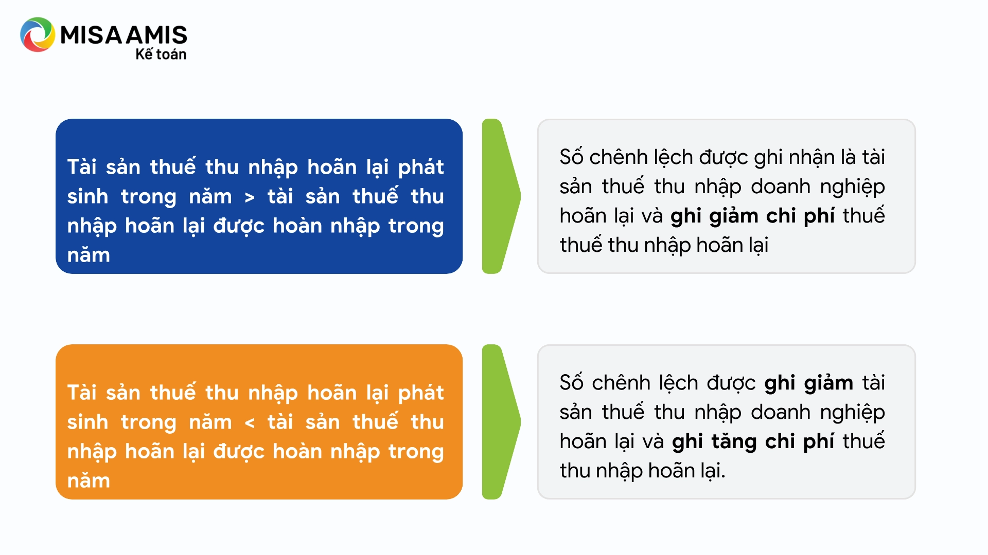 - Nếu tài sản thuế thu nhập hoãn lại phát sinh < tài sản thuế thu nhập hoãn lại được hoàn nhập trong năm thì ghi giảm tài sản thuế thu nhập hoãn lại và ghi tăng chi phí thuế thu nhập hoãn lại.