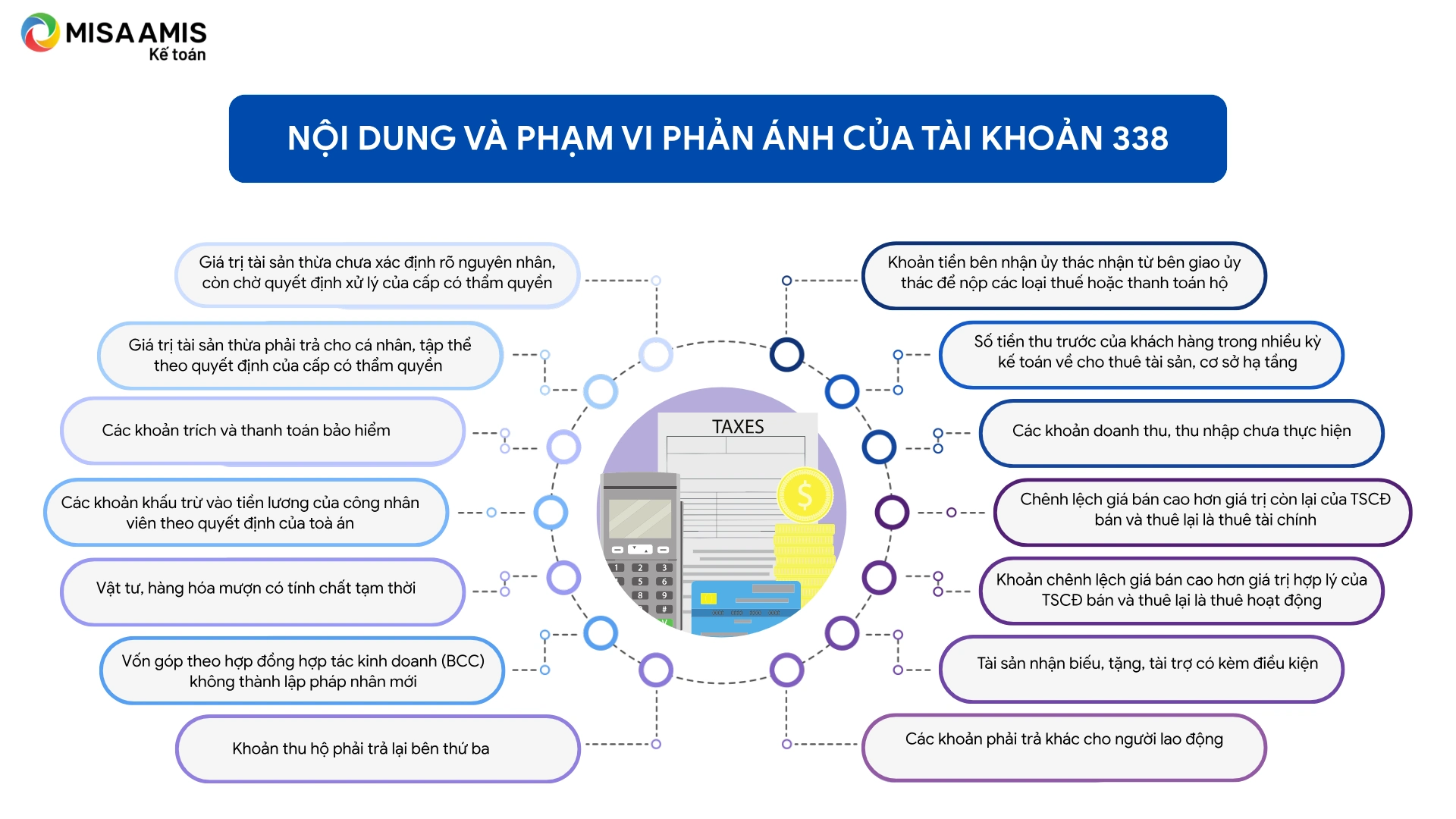 Nội dung và phạm vi phản ánh của TK 338 bao gồm: