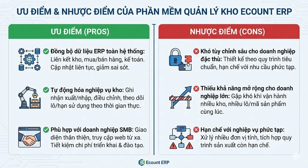 3. Ưu điểm – nhược điểm của phần mềm quản lý kho Ecount