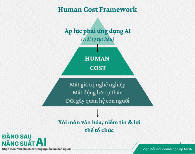 Dựa trên Human Cost Framework và ba nhóm human cost được phân tích, ấn phẩm mời lãnh đạo chuyển đổi góc nhìn – từ vai trò “người triển khai sáng kiến” sang vai trò “người quan sát tác động lên đội ngũ”. Đây là bước quan trọng để đánh giá chính xác AI đang ảnh hưởng thế nào đến tâm lý, động lực và giá trị nghề nghiệp của nhân viên – những yếu tố quyết định độ bền của tổ chức về dài hạn.