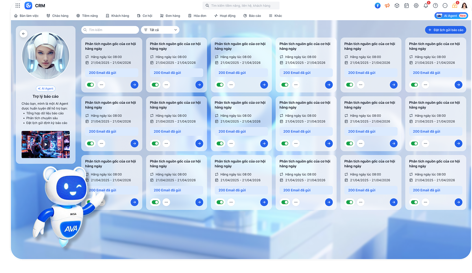 - Gợi ý email, báo cáo và kịch bản chăm sóc để tối ưu thời gian thao tác.