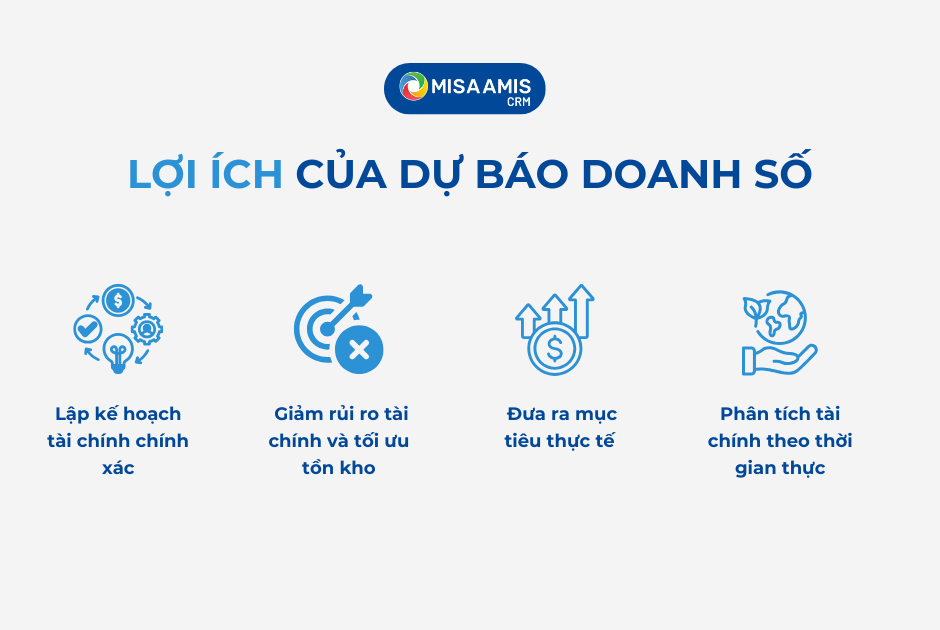 Dự báo doanh số giúp doanh nghiệp đưa ra quyết định sáng suốt, lập kế hoạch tài chính và phân bổ nguồn lực hiệu quả, quản lý dòng tiền tốt hơn, xác định cơ hội rủi ro, đặt mục tiêu thực tế, và tạo nền tảng cho tăng trưởng bền vững.