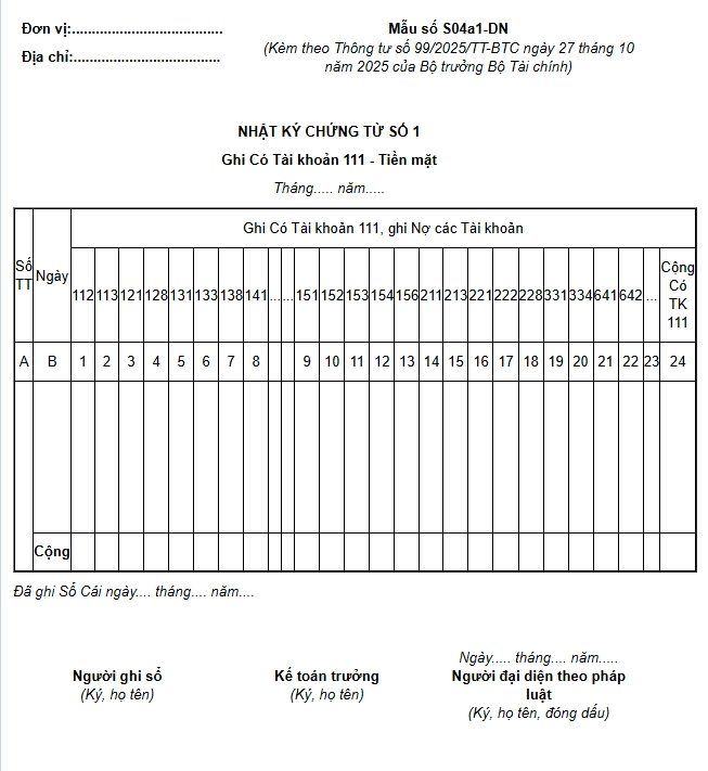 2.1. Nhật ký- Chứng từ số 1 (Mẫu số S04a1-DN)