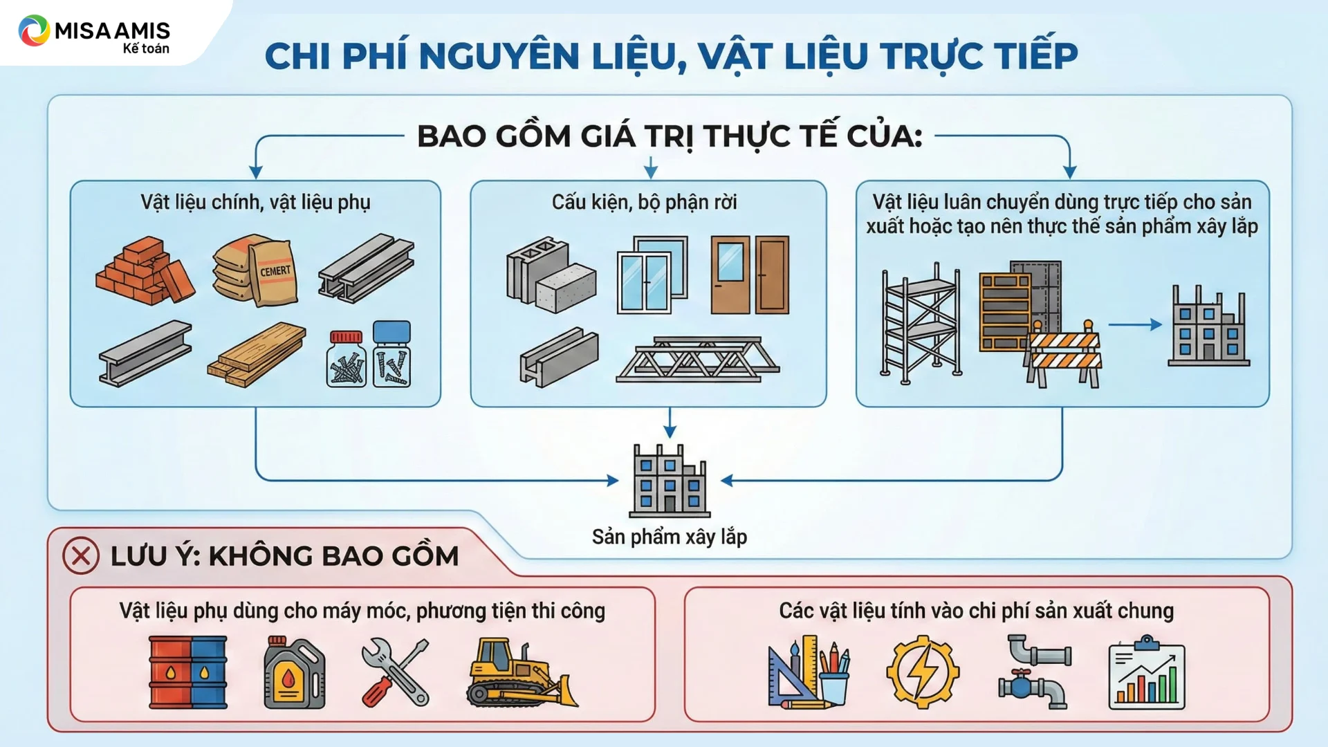 (Lưu ý: Không bao gồm vật liệu phụ dùng cho máy móc, phương tiện thi công hay các vật liệu tính vào chi phí sản xuất chung.)