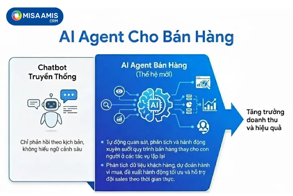 Khi chi phí nhân sự tăng cao, hành vi khách hàng ngày càng phức tạp và tốc độ phản hồi trở thành lợi thế cạnh tranh sống còn, doanh nghiệp Việt Nam không thể tiếp tục bán hàng theo cách thủ công hoặc rời rạc dữ liệu. AI Agent cho bán hàng, khi được tích hợp sâu vào CRM, sẽ là nền tảng giúp doanh nghiệp khai thác dữ liệu hiệu quả, tăng năng suất đội sales và ra quyết định dựa trên dữ liệu thay vì cảm tính. Cùng MISA AMIS tìm hiểu về AI Agent cho bán hàng trong bài viết dưới đây:
