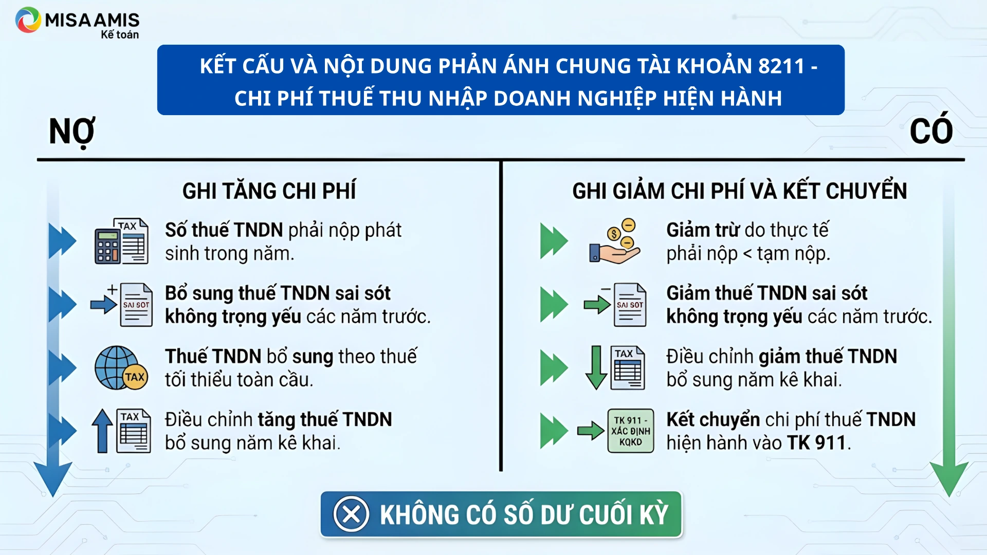 Tài khoản 8211 – Chi phí thuế thu nhập doanh nghiệp hiện hành không có số dư cuối kỳ.