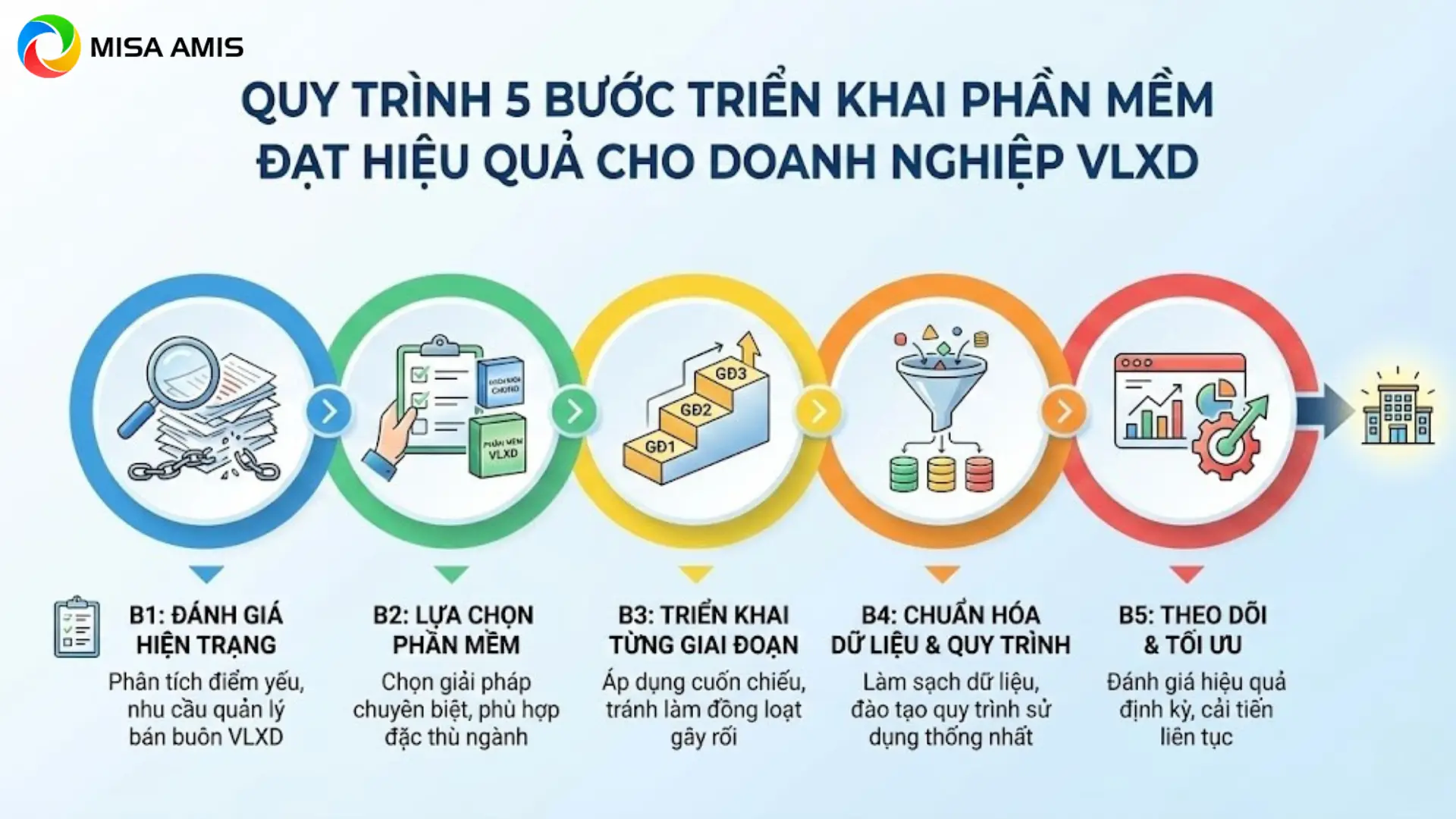 Trong bài viết này hãy cùng MISA AMIS phân tích lý do vì sao doanh nghiệp vật liệu xây dựng hiện đại cần một phần mềm quản lý bán buôn vật liệu xây dựng tích hợp, cùng lộ trình 5 bước triển khai thực tế giúp doanh nghiệp phát triển theo hướng bài bản và bền vững hơn.