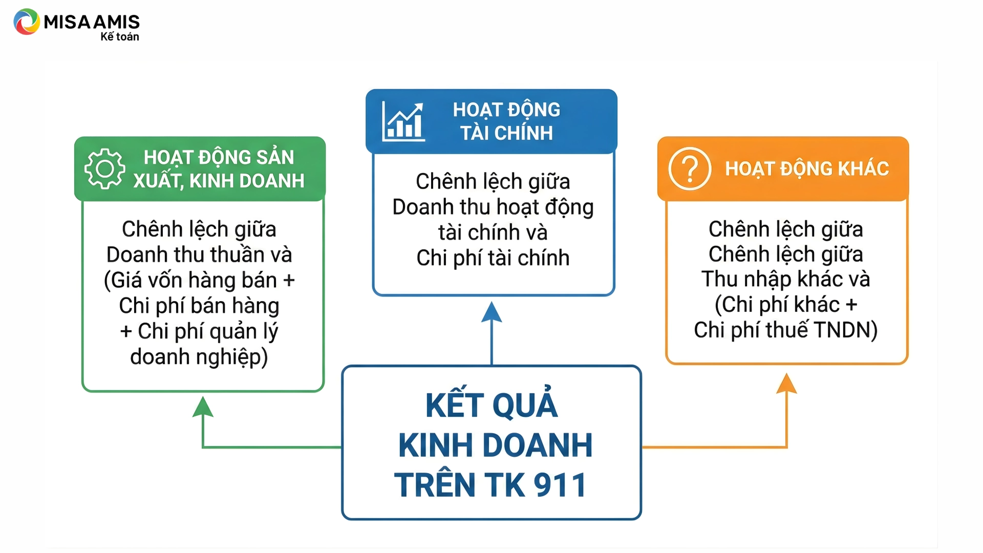 Kết quả kinh doanh trên TK 911 được tổng hợp từ 3 mảng hoạt động chính: