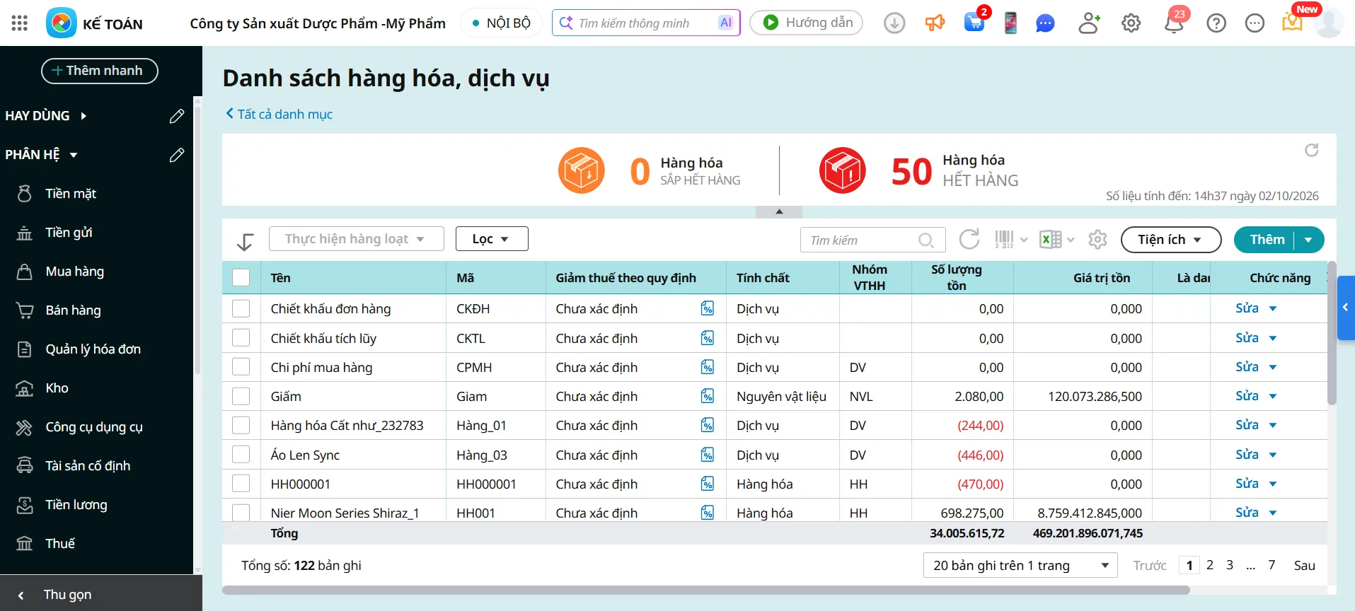 - Quản lý danh mục vật tư hàng hóa, thông minh: Dễ dàng khai báo và theo dõi chi tiết vật tư, hàng hóa, thành phẩm (bao gồm cả hàng có đơn vị tính quy đổi, mã quy cách, combo sản phẩm hay định mức lắp ráp/tháo dỡ).