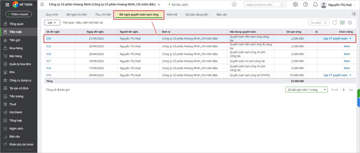 - Xem Giấy đề nghị thanh toán công nợ để theo dõi và nhắc nhở khách hàng về công nợ còn phải thu trong kỳ.