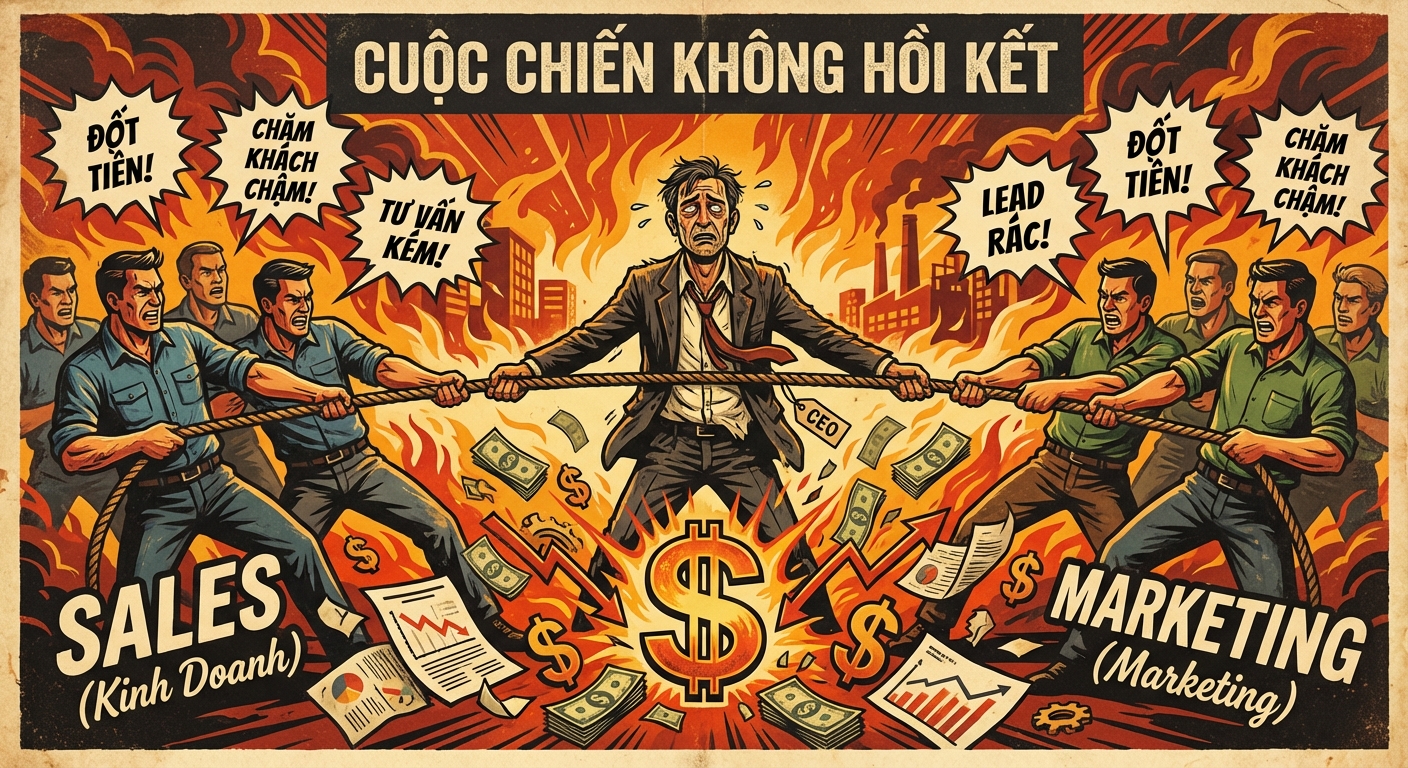 Đặc biệt là Marketing và Sales luôn rơi vào tình trạng “cơm không lành, canh không ngọt”. Marketing đầu tư ngân sách để mang về khách hàng tiềm năng (leads) nhưng không thể đo lường hiệu quả chuyển đổi cuối cùng. Ngược lại, bộ phận Sales thiếu thông tin về các chiến dịch marketing đã tiếp cận khách hàng để có kịch bản tư vấn phù hợp. Sự thiếu liên kết này không chỉ làm giảm hiệu suất toàn công ty mà còn tạo ra một trải nghiệm không đồng nhất cho khách hàng. Cuối cùng Marketing trách Sales không biết chốt khách, Sales đổ thừa Marketing chạy toàn lead rác.