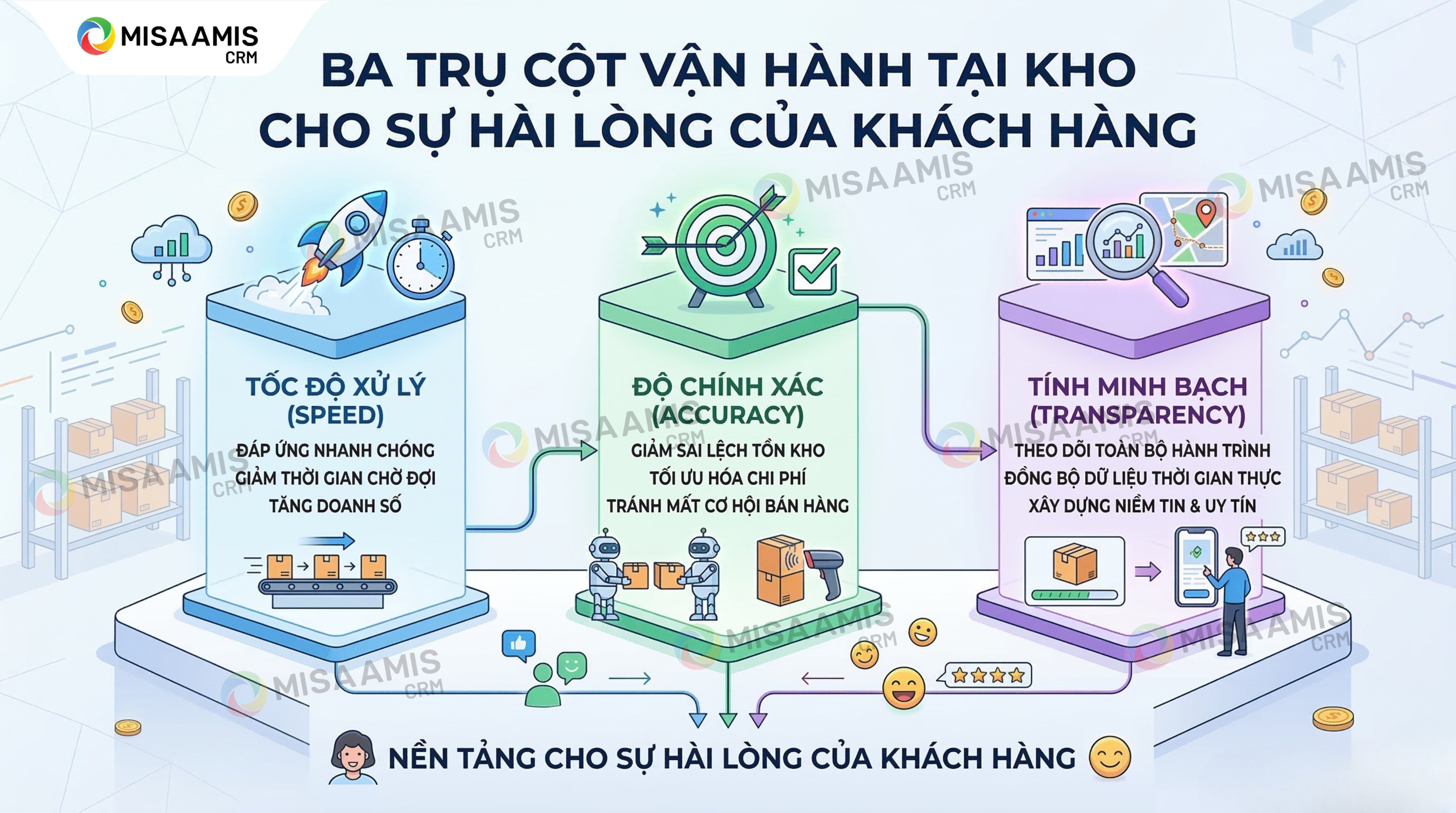 Sự hài lòng của khách hàng lúc này dựa trên ba trụ cột vận hành tại kho: