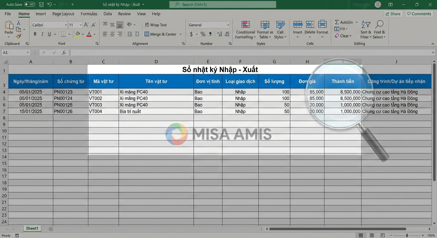 Do đó, một file excel quản lý kho vật tư xây dựng tiêu chuẩn cần được thiết kế logic, liên kết chặt chẽ giữa các sheet dữ liệu để đảm bảo tính chính xác cao nhất.