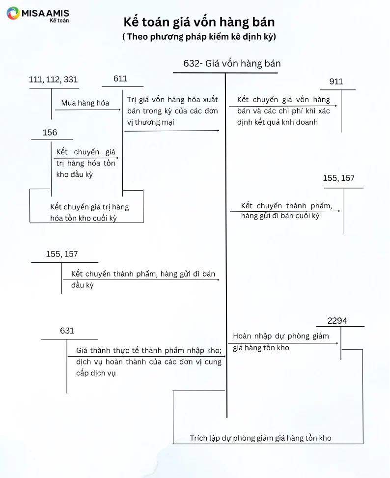 5.2. Hạch toán Tài khoản 632 Giá vốn hàng bán với doanh nghiệp kế toán hàng tồn kho theo phương pháp kiểm kê định kỳ
