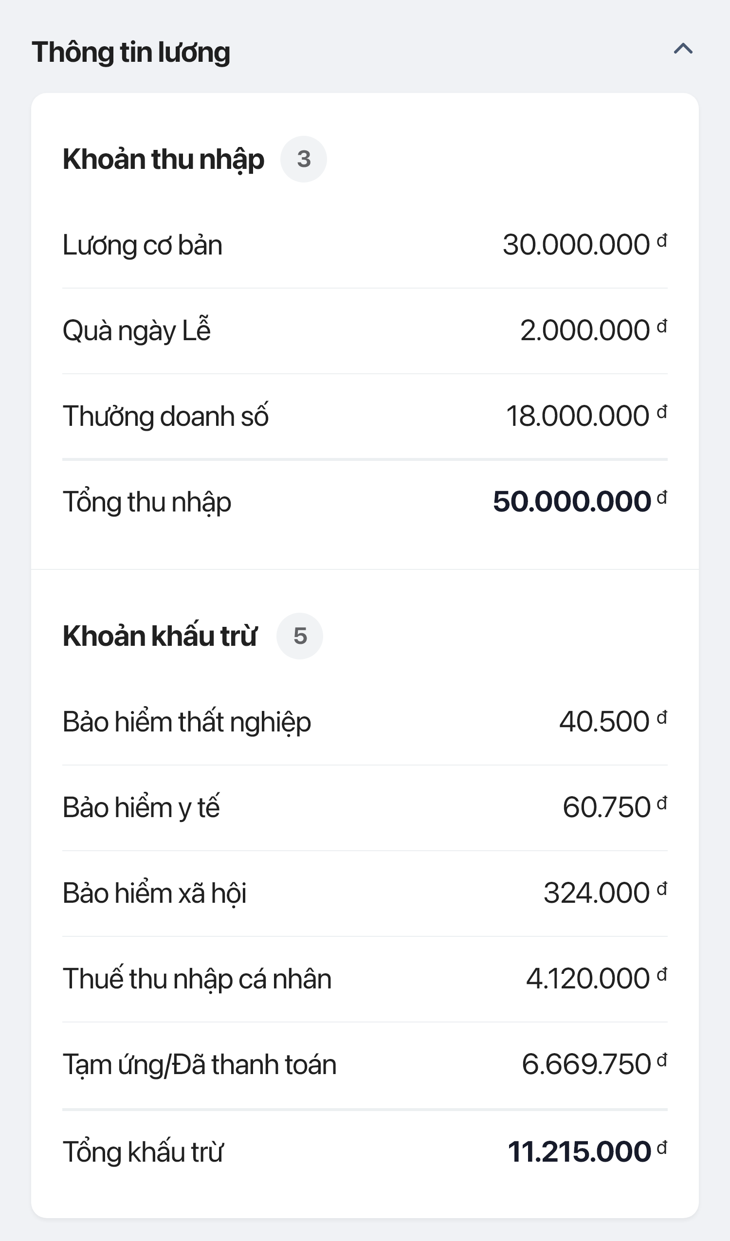 Khi doanh nghiệp sử dụng AMIS Tiền lương, từng khoản khấu trừ sẽ được tính tự động và hiển thị chi tiết, cụ thể trong phiếu lương hàng tháng mà phần mềm tự động tạo và gửi cho người lao động. Người lao động dễ dàng nắm bắt, HR hay kế toán tính lương cũng không lo sai sót vì con số khấu trừ thường khá lẻ.