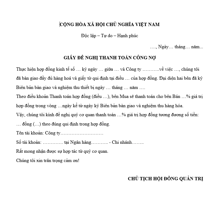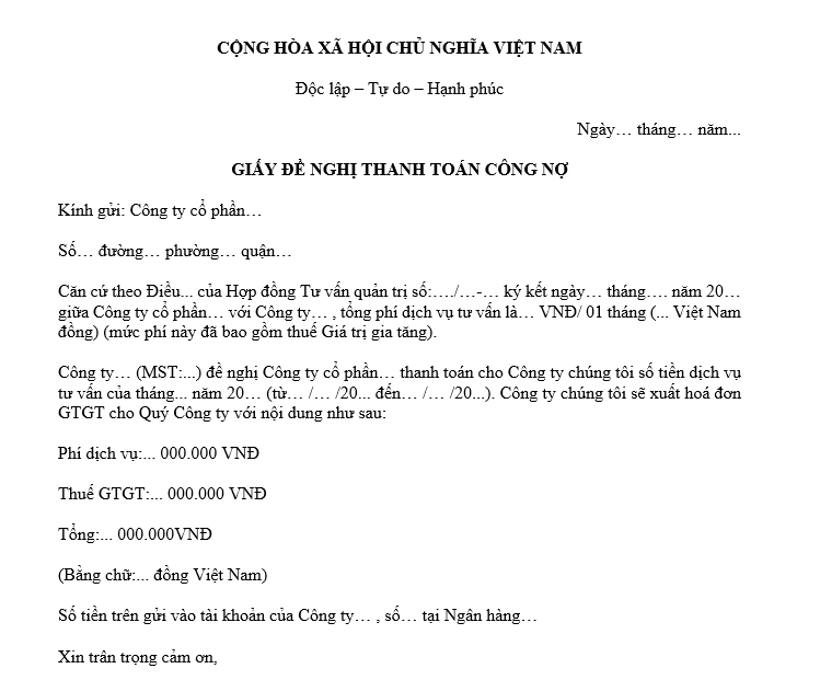 Mẫu giấy đề nghị thanh toán gửi khách hàng