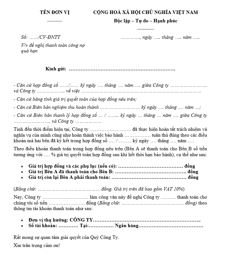 Mẫu đề nghị thanh toán công nợ quá hạn