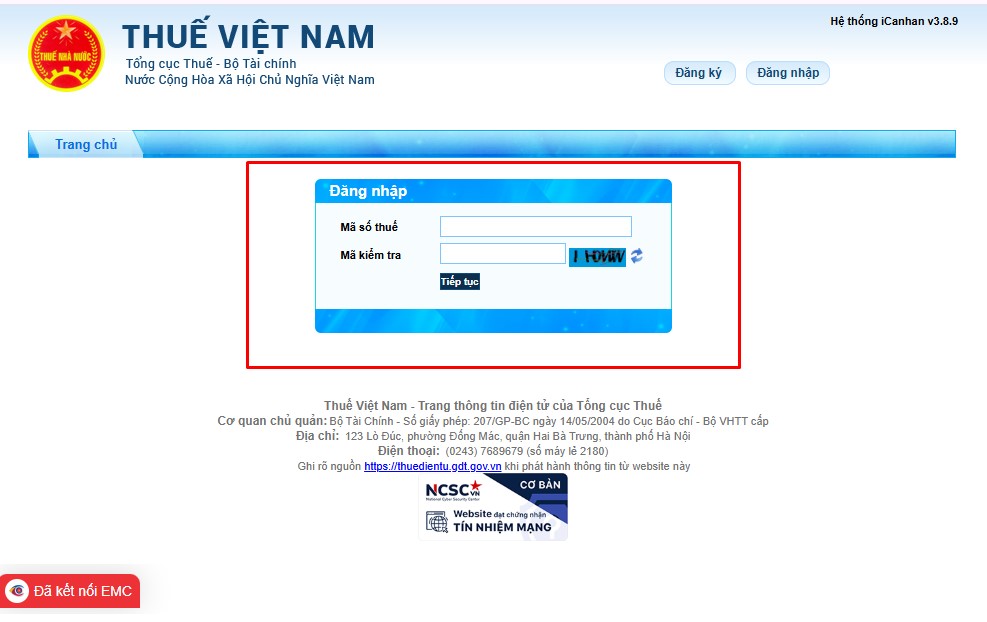 - Bước 1: Truy cập trang web thuế điện tử và nhập các thông tin: