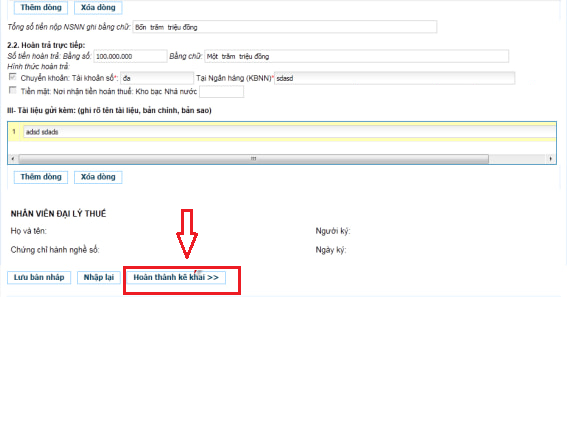 - Bước 7: Chọn “Hoàn thành kê khai”